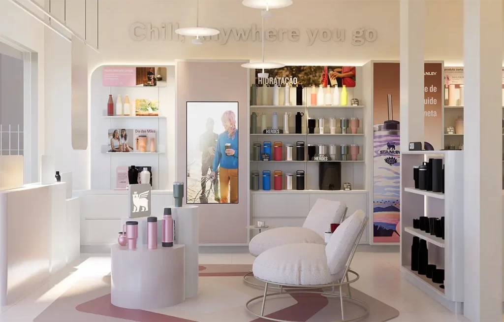 A loja foi pensada como um ambiente de convivência e descoberta, conectando consumidores à cultura Stanley por meio de eventos, ativações e experiências interativas.